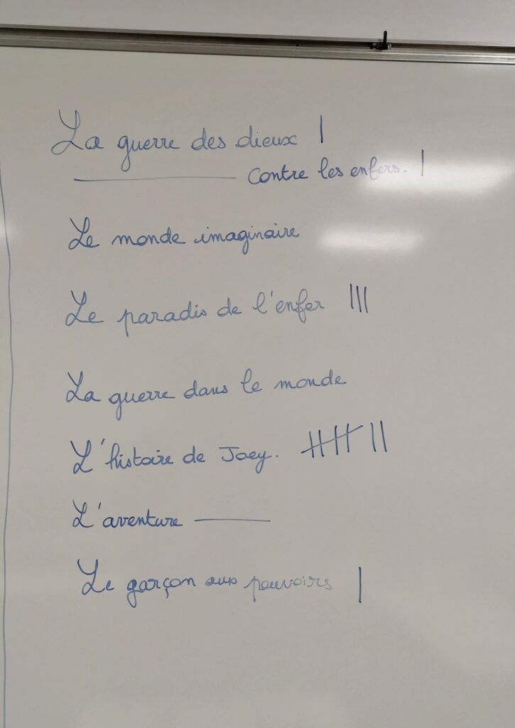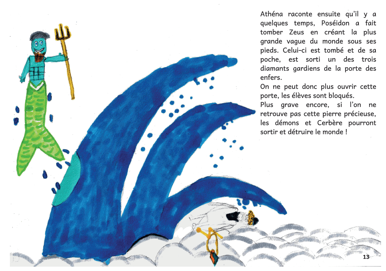 L’histoire de Joey, c’est celle de jeunes d’un ITEP qui sauvent un demi-dieu de la noyade. De jeunes qui vont s’entraîner auprès des dieux de l’Olympe pour arrêter la guerre entre Zeus et Poséïdon. Ils sont ambitieux nos écrivains en herbe non ? Et ils ont raison ! Parce que leur histoire est originale, belle et avec de la profondeur. Ils y ont ajouté quelques pages documentaires qu’ils ont rédigées eux-mêmes pour en savoir plus sur l’Olympe.