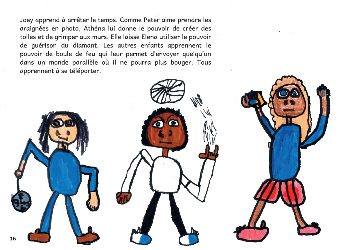 C’est ainsi que L’histoire de Joey se construit. C’est un plaisir renouvelé de les voir s’éveiller, se mobiliser de plus en plus, donner le meilleur d’eux-mêmes. Les plus récalcitrants de quelques heures se mettent à la tâche. Même l’endormi (qui ne l’était pas) revient le lendemain, il a relevé la tête et nous dit : « on ne m’avait pas dit aussi que c’était bien ! ». Dès lors, le manteau reste sur la chaise et neurones et doigts font parler son imagination ! Je n’en suis pas peu fière !