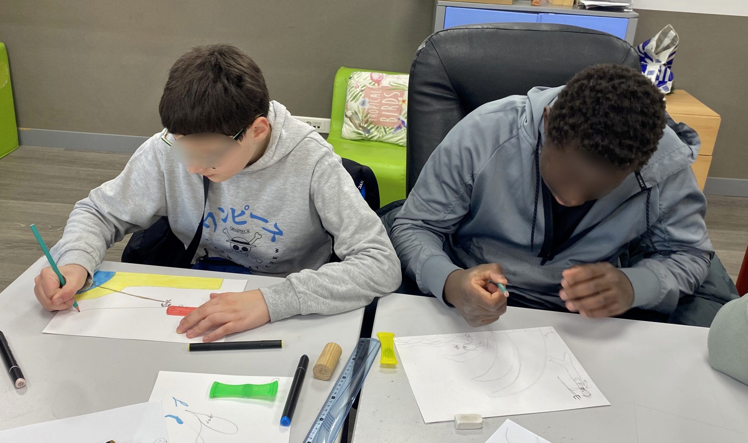 En 2023, j’ai le plaisir de mener un atelier d’imagination à l’ITEP (ancienne appellation) de Morigny Champigny. Deux classes participaient à l’aventure et franchement, nous avons passés de vrais beaux moments de créativité. Les enfants étaient fiers du travail accompli et les enseignantes et moi-même étions très fières d’eux. Alors forcément, quand le DITEP me propose de revenir… je saute dans le train !